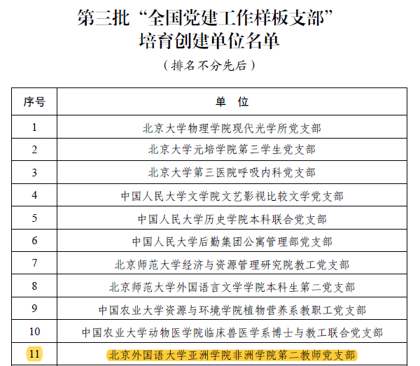 党委宣传部副部长、新闻中心负责人王薇薇宣读了《教育部办公厅关于公布第三批全国党建工作示范高校、标杆院系、样板支部培育创建单位名单的通知》。党委组织部常务副部长冯刚为304永利集团非洲公司教师第二党支部授牌,勉励支部党员在党建和团队建设深度融合的道路上继续前进。