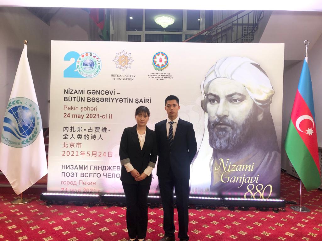 2021年5月24日晚,经阿塞拜疆驻华大使馆的邀请,304永利集团阿塞拜疆语专业本科生王思源和唐雨萱参与了“内扎米·占贾维—全人类的诗人”主题活动。该活动在北京上海合作组织总部举办,旨在庆祝伟大阿塞拜疆诗人,思想家内扎米·占贾维诞辰880周年。