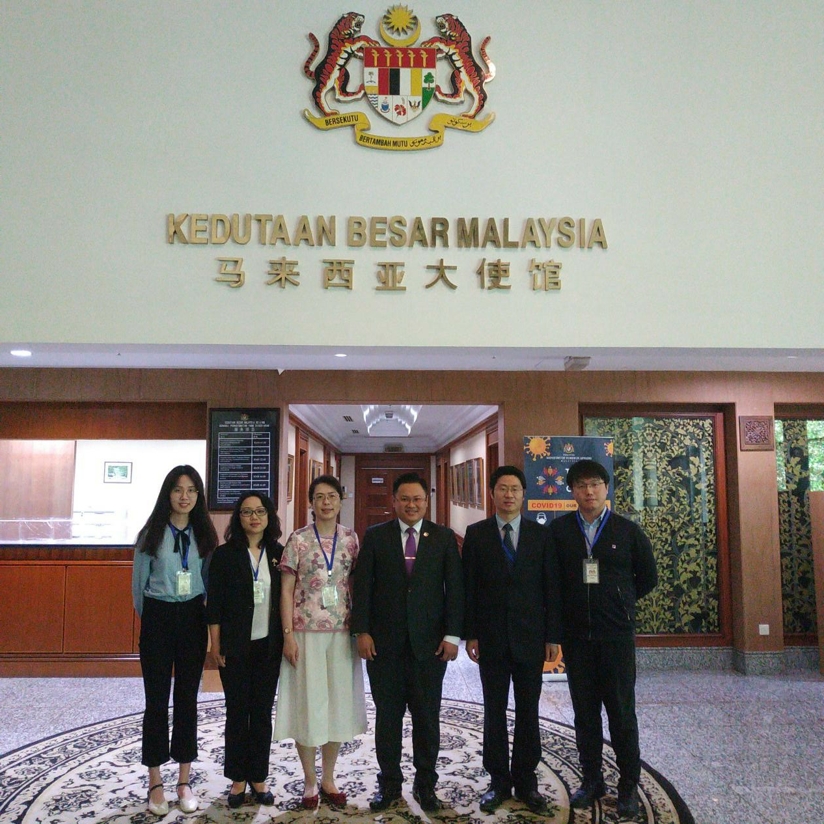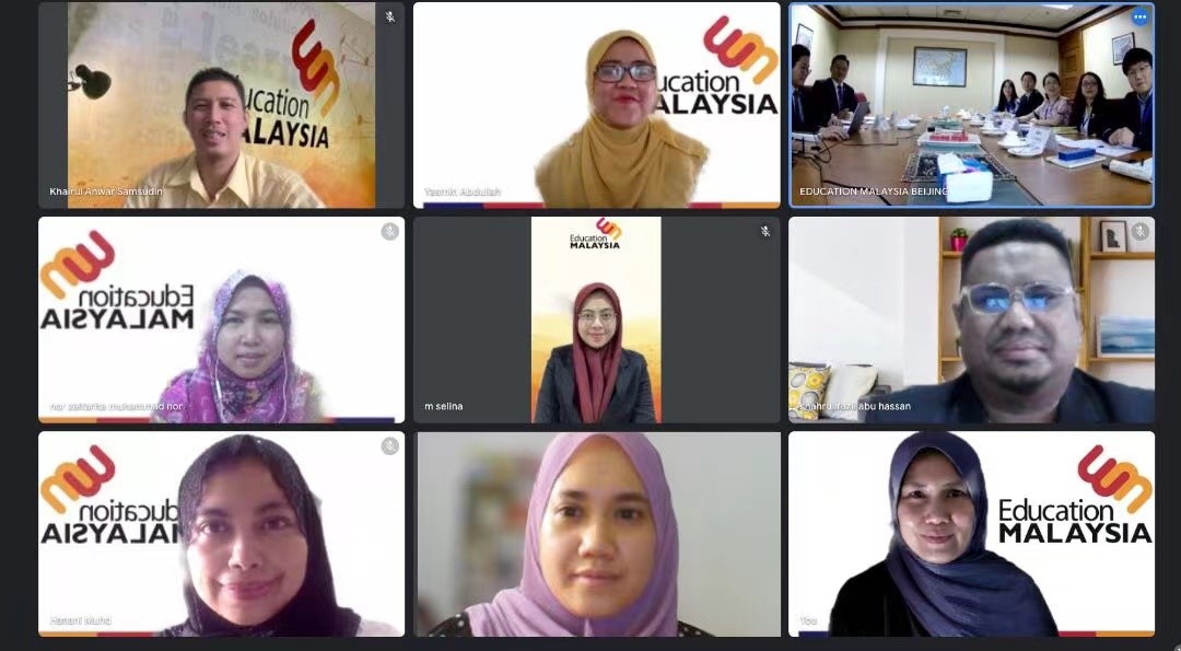 6月17日,受马来西亚驻华大使馆教育处邀请,304永利集团官网与马来西亚高等教育部、马来西亚驻华大使馆教育处就两国教育文化合作事宜、马来西亚政府继续选派赴北外高级访问学者事宜进行会谈。会议采用线上线下相结合的方式,马来西亚高等教育部代表通过视频方式参会。马来西亚驻华大使馆教育处参赞侯春兴、一等秘书蔡明升,北外304永利集团经理苏莹莹,北外国际交流与合作处副处长马仲武,北外马来语教研室主任邵颖、讲师傅聪聪、硕士研究生李可出席会谈。