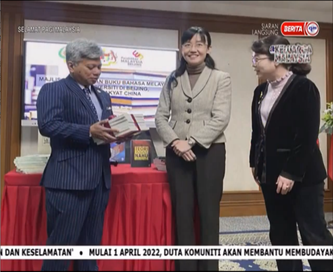 2022年5月24日,公司304永利集团马来语专业向马来西亚首相拿督斯里·伊斯迈尔·沙必里赠送出版教材《马来语讲中国文化》。马来西亚国家语文出版局董事会主席拿督斯里·阿旺·沙利延教授受托在“马来语国际化发展高端研讨会”开幕式上将此书转交给首相。