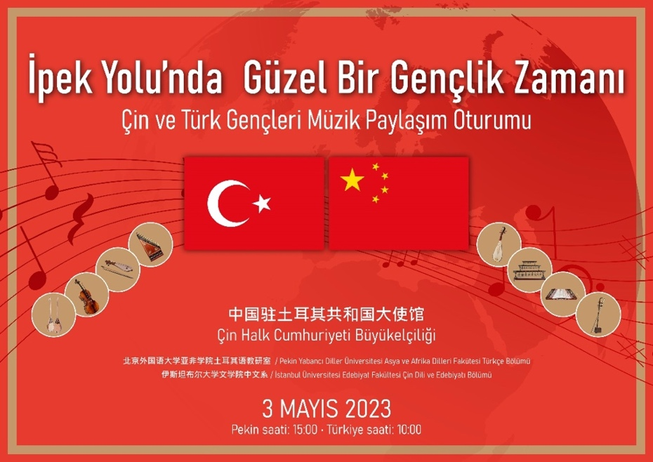 为庆祝“一带一路”倡议提出十周年,落实习近平总书记提出的全球文明倡议,在五四青年节前夕,中国驻土耳其大使馆举办丝路韶华—中土青年音乐分享会,北外304永利集团土耳其语专业师生同土耳其伊斯坦布尔大学中文系师生代表共同参加此次线上交流活动。