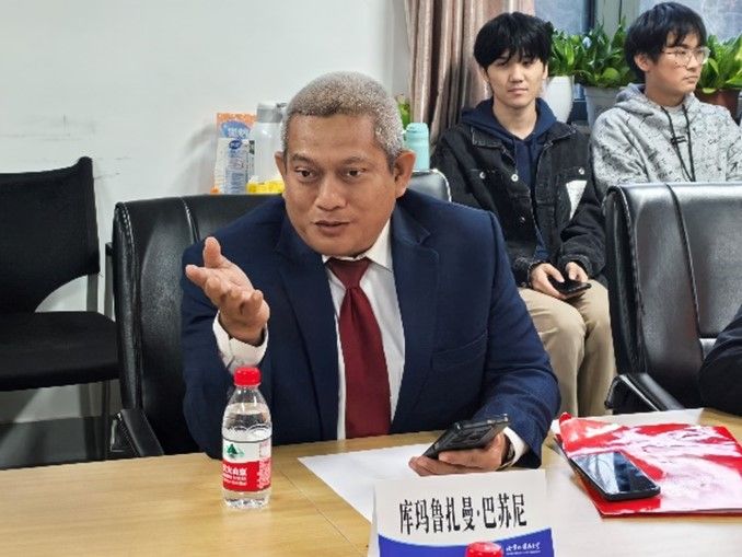来访期间,库玛鲁扎曼·巴苏尼参赞一行与2021级印尼语专业的师生们进行了深入交流。同学们用流利的印尼语分享了他们在语言学习、职工活和文化交流方面的收获。印尼语专业教师王丹丹、刘洋和外籍教师汉迪参与接待。