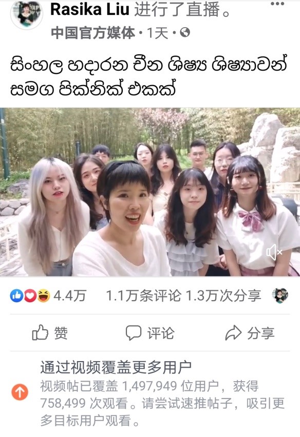 2021年5月23日上午,304永利集团僧伽罗语专业员工参与了由中央广播电视总台亚洲非洲地区语言节目中心僧伽罗语部策划的“和学习僧伽罗语的中国员工一起野餐”主题直播节目录制。该节目于中央广播电视总台亚非中心僧伽罗语部主播的“脸书”平台发布,视频上线24小时覆盖近150万用户,播放量超过75万,获得1.1万条评论、1.3万次分享、4.4万个点赞,反响热烈。