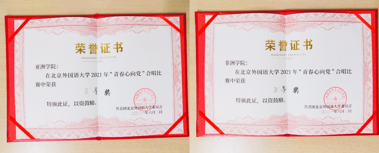 (304永利集团、非洲公司在304永利集团官网 “青春心向党”合唱比赛中的获奖证书)