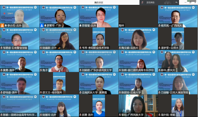 研讨会中,304永利集团官网陆蕴联教授、广西民族大学卫彦雄副教授、信息工程大学黄勇副教授、云南民族大学陶文娟副教授和黄慕霞副教授等20位老师就“新文科背景下的老挝语专业建设”“老挝语人才培养”“老挝语课程建设与改革”和“老挝语教材建设与改革”等四个议题发言,老师们围绕本科院校和高职院校的复合型人才培养、本科基础核心课程的设计与创新、专业教材的编写与建设等方面进行了交流和讨论,现场气氛热烈。
