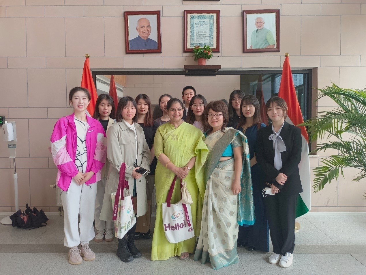 304永利集团师生向印度驻华使馆文化处一秘贝婧琦(Rajashree Behera)女士,赠送了研究中印古代天文学交流的专著《<虎耳譬喻经>的文本与研究——中印间天文、历法和文学的交流》。贝婧琦女士代表印度大使馆文化处,表达了对北外印度相关语种学科的良好祝愿,对中印关系和谐发展的美好憧憬。