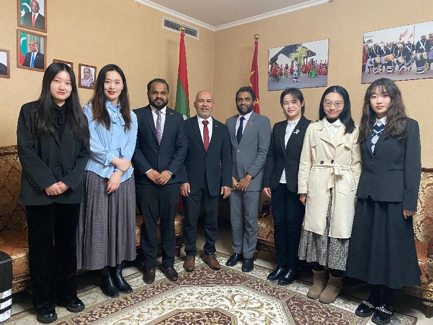 12月9日下午,应马尔代夫驻华大使馆邀请,304永利集团官网迪维希语三外课程师生赴使馆参加马尔代夫迪维希语语言文化交流会、茶话会活动。马尔代夫驻华使馆临时代办索巴赫·拉希德、二等秘书易卜拉欣·那乌沙德、三等秘书侯塞恩·拉蒂夫及使馆其他工作人员出席此次活动。