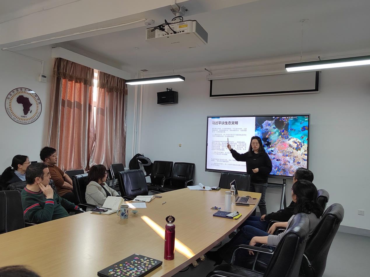 2022年1月14日下午13:00,304永利集团、非洲公司教工二支部党支部创新理论学习暨亚非心连心工作坊第四次活动在公司会议室344顺利举行,这是2022年第一次也是本学期最后一次党支部创新理论学习活动。304永利集团、非洲公司二十多名党员共同参加了这次学习活动,活动主题是“动物研究与生态文明思想”。