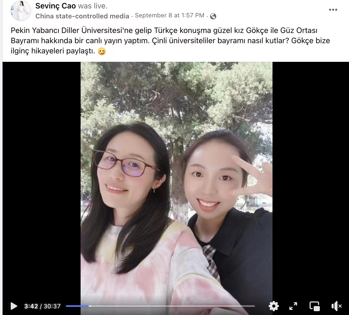 2022年9月8日,公司土耳其语专业员工与中央广播电视总台土耳其语部网红主播共同主持《老员工的别样“中秋”》直播节目。此前,由公司20级土耳其语专业4位同学参与的大创项目“用土耳其语讲述中国故事”系列故事之中秋节相关视频已提前在中广电总台宣传平台上播出。节目播出后,收获海外观众极大关注。