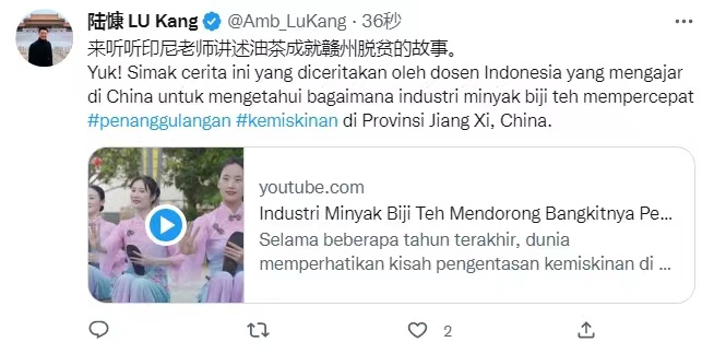 同时,该专题视频还被中国驻印尼大使陆慷特别转载。