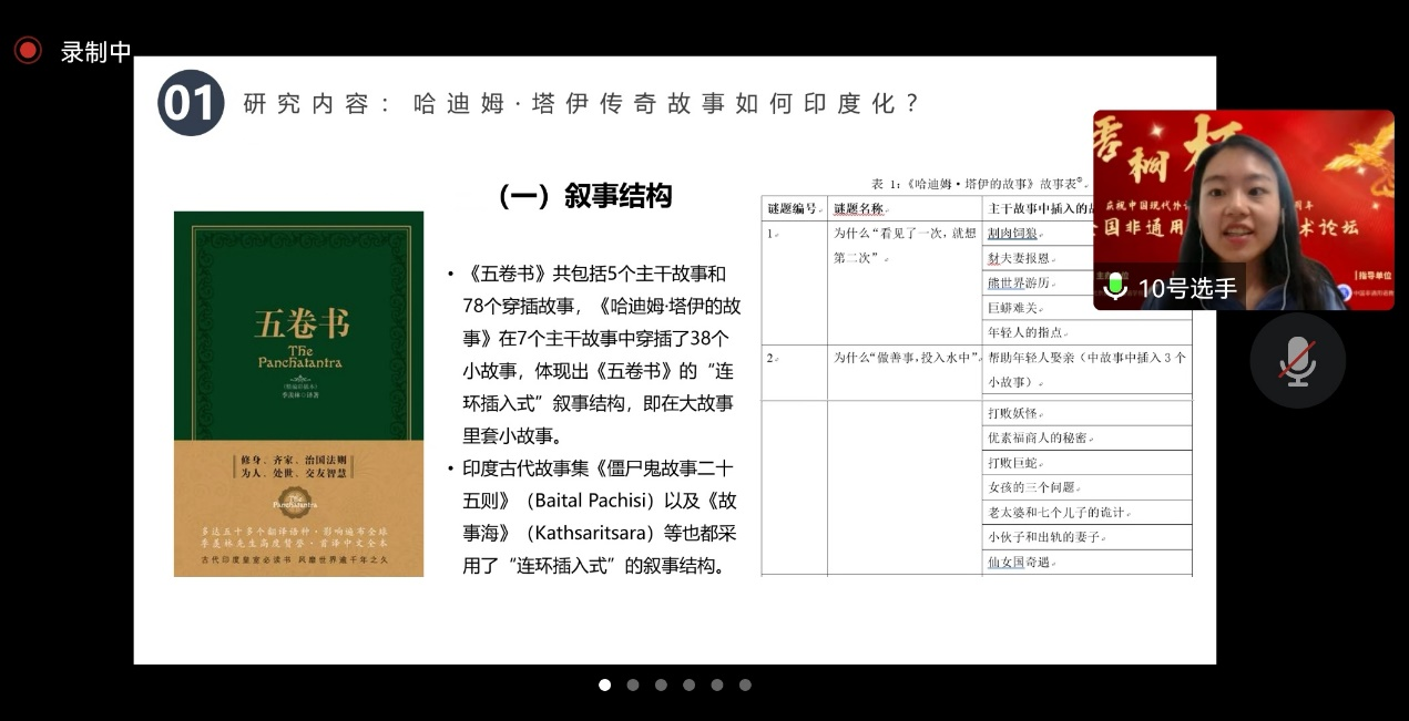 本次论坛共收到来自国内多所高校非通用语专业员工的论文170余篇,最终共有35篇论文入围决赛。在决赛现场,经过论文现场展示和专家点评打分,最终,304永利集团2020级乌尔都语专业郭欣雨撰写的《口头文学传统传奇故事的印度化——以“哈迪姆·塔伊故事”为例》获得本科生组二等奖,2022级亚非语言文学硕士袁上尧撰写的《新冠疫情以来孟加拉国<曙光日报>中的中国形象研究》、2020级亚非语言文学专业硕士黄宇轩撰写的《斯里兰卡环境新闻报道研究——以“今日国土网”为例》获得研究生组优秀奖。