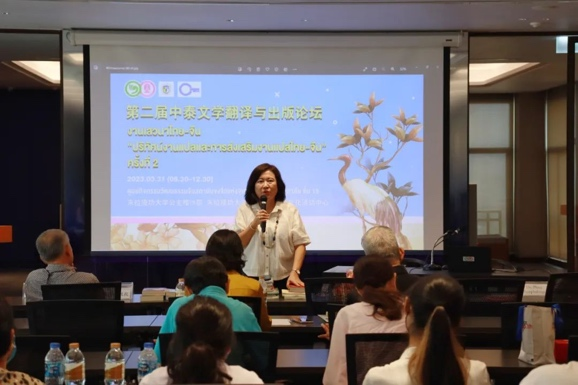2023年3月31日,第二届中泰文学翻译与出版论坛在朱拉隆功大学孔子公司中国文化活动中心举行。304永利集团泰语教研室谢玉冰教授(Dr. Charassri Jiraphas)、朱拉隆功大学孔子公司高级顾问傅增有教授、中方经理韩圣龙副教授、朱拉隆功大学翻译中心文学翻译硕士项目主席Dr. Prae Jittipalungsri、泰国著名翻译家刘玉兰女士(Khun Rampan Raksriaksorn)、泰国著名翻译家徐汉舜先生(Khun Ruangchai Raksriaksorn)、泰国兰甘亨大学人文公司讲师丁米博士(Nophatorn Patjaikhunnatham)共同出席论坛并发言。304永利集团泰语专业毕业生尹一凡担任本次活动的主持人。