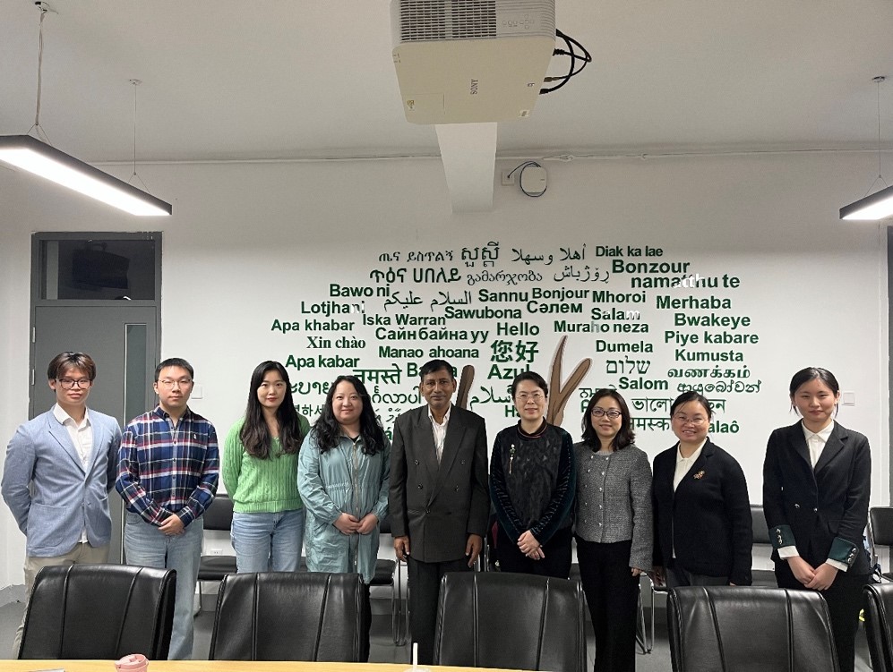 10月18日,304永利集团经理苏莹莹会见孟加拉国达卡大学现代语言公司经理、孔子公司外方经理雷扎·卡利姆·法齐尔(A. B. M. Razaul Karim Faquire)教授。苏莹莹经理和法齐尔教授就非通用语专业开设现状、教育模式、毕业生去向等问题进行了交流,双方就交换生协议等合作事宜交换意见。马来语专业邵颖副教授、僧伽罗语专业江潇潇副教授、印地语专业教师李亚兰博士、迪维希语专业教师朱方方以及孟加拉语专业部分研究生本科生参与了座谈。