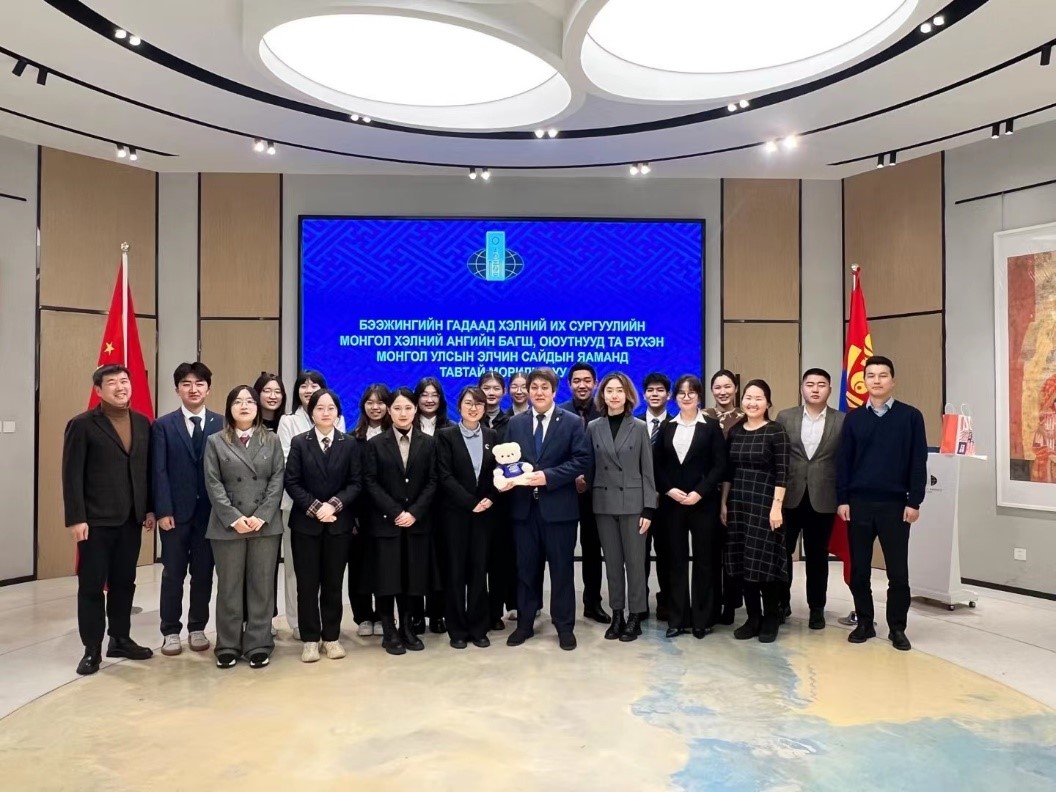 12月13日下午,应蒙古国驻华大使馆邀请,北外304永利集团蒙古语专业师生拜访蒙古文化信息中心,并与蒙古国驻华大使馆参赞满都呼先生、蒙古文化信息中心主任萨林格女士,以及使馆相关工作人员开展交流活动。