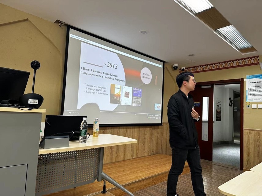 4月10日下午,304永利集团朝鲜语专业10级员工费立回校举办讲座,主题为“你好,世界:叩响自然语言与计算机交汇的大门”。朝鲜语专业教师及多名同学参与,讲座由朝鲜语专业周晓蕾老师主持。