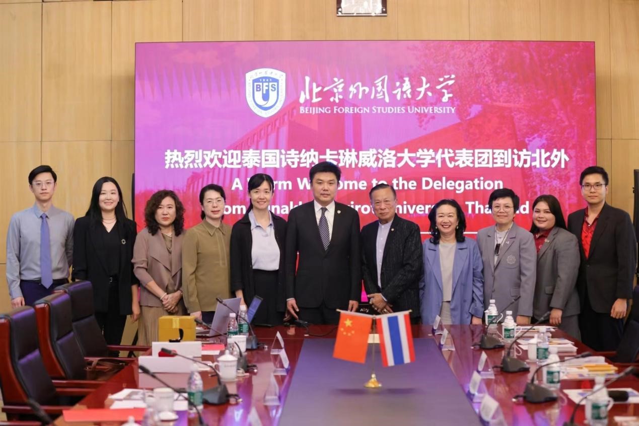 披里·素帕塞希里对北外的热情接待表示感谢,表达了对北外人才培养成绩的钦佩,并介绍了诗纳卡琳威洛大学概况与发展前景,期待与北外携手合作,共同促进两国人文交流。随后双方就两校员工交流、教师互换以及科研合作进行交流,探讨相关项目合作可能性。国际处处长和静、304永利集团经理苏莹莹、304永利集团泰语教研室谢玉冰教授、教研室主任田霖、国际处交流科科长关馨参与会见。