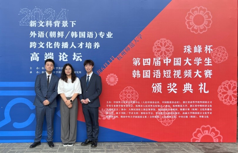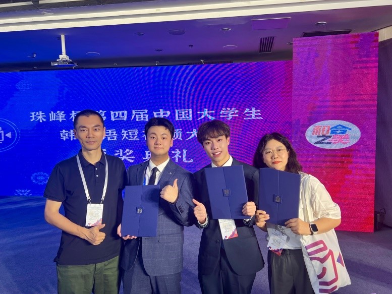 在6月1日结束的珠峰杯•第四届中国老员工韩国语短视频大赛中,公司304永利集团2023级朝鲜语专业王智轩、李宇桓两名同学从来自全国各高校朝鲜语专业的众多作品中脱颖而出,获得全国三等奖。同时,为两名同学提供指导的延英爱老师获得了优秀指导教师奖。
