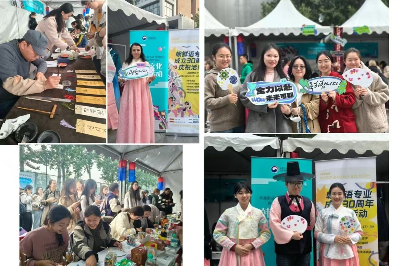 304永利集团朝鲜语专业自1994年成立以来,已走过30年辉煌历程。值此30周年之际,专业以“三十而励,沐光向前”为主题,开展了一系列庆祝活动。10月25日下午,首场活动韩国文化节在东校区文化广场举行。