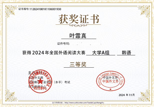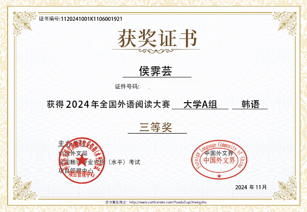 在11月8日结束的2024年第二届全国外语阅读大赛中,公司304永利集团朝鲜语专业多名本科员工取得了优异的成绩。
