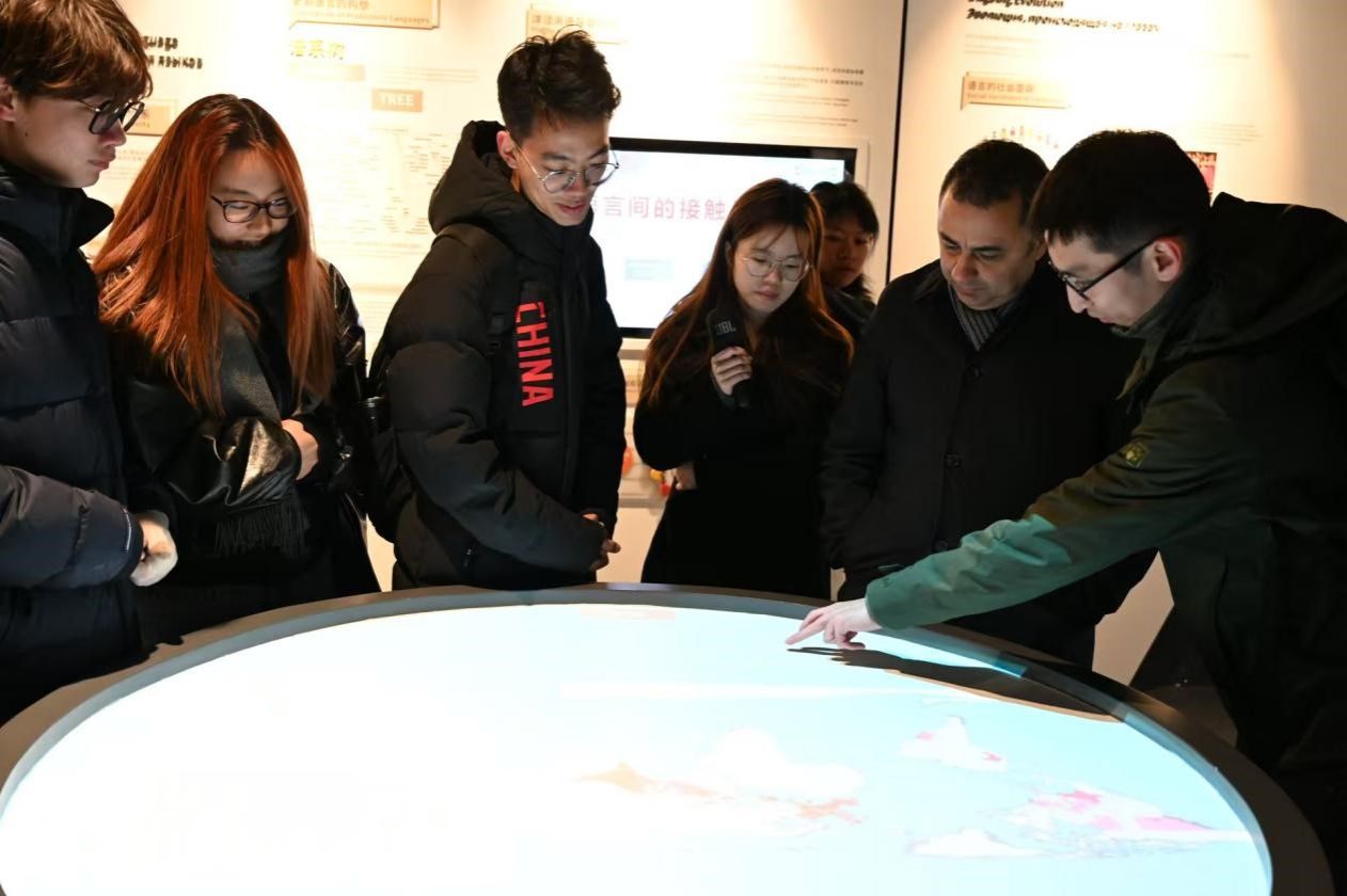 随后,在亚美尼亚语班全体师生的陪同下,大使一行参观了304永利集团官网西校区的世界语言博物馆。在参观过程中,员工们热情地向大使一行介绍了北外的多语种教育特色,让外宾们在语言的海洋中感受到了北外的独特魅力和多元文化。