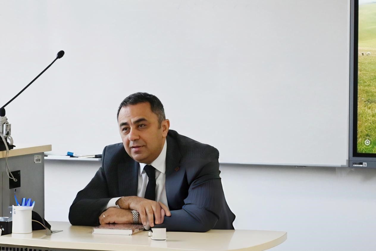 在活动中,格沃尔克扬大使与同学们进行了亲切而深入的对话,耐心回答了同学们对于亚美尼亚文化、历史、艺术以及中亚合作的诸多问题。大使从亚美尼亚的文学艺术瑰宝讲起,延伸至亚美尼亚与中国在各领域的全方位合作,特别强调了两国在文化合作方面的丰硕成果与未来展望。这不仅让亚美尼亚语专业的师生们对亚美尼亚文化有了更深刻的理解,也提供了宝贵的学习实践机会。