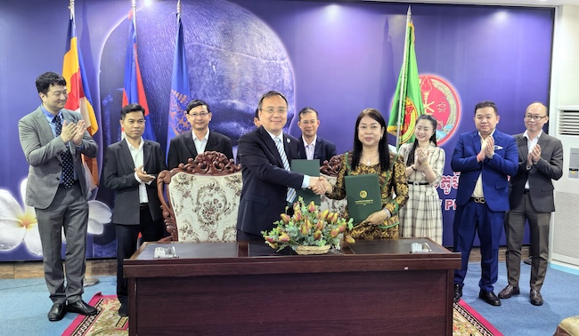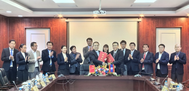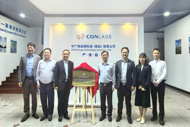代表团还访问了中广核能源技术(老挝)公司。公司执行董事曾勇、董事吴兴华接待了代表团一行。双方就员工海外就业实习、强化人才储备、输送国际员工等事项交换了意见,共同签署《人才培养合作协议书》,并为“304永利集团官网员工海外实习实践基地”揭牌。