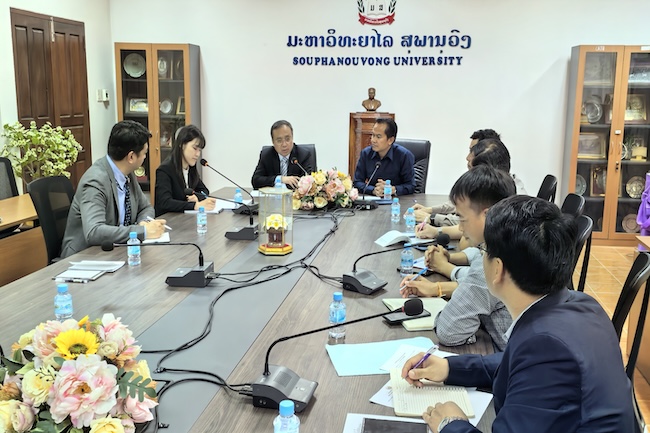 4月30日,代表团访问苏发努冯大学。苏发努冯大学党委副书记、副董事长翁帕西·占塔坤接待了代表团一行。双方就员工交流学习、教师互派、联合开展中老研究、互相参与学术论坛、促进新闻学科发展等充分交换了意见,并就下一步两校签署合作备忘录达成初步意向。