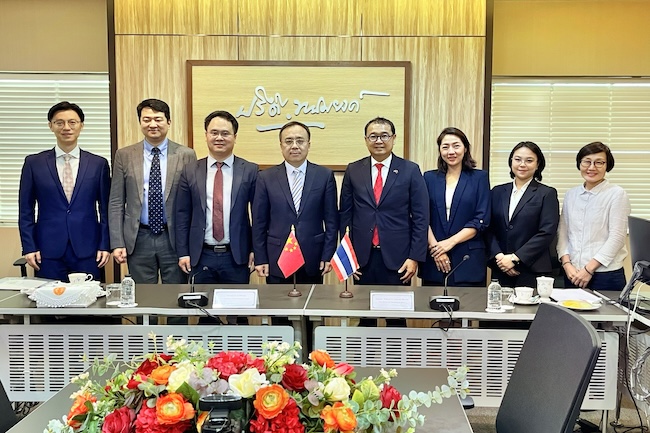 4月24日下午,代表团访问朱拉隆功大学,与文公司副经理帕苏里·叻萨昆、对外泰语教学中心主任吉·泰楚素进行座谈。双方在员工交流学习、互派教师任教、公司领导互访、开展联合研究等方面进行交流研讨,并就下一步从公司层面签署相关协议达成合作意向。