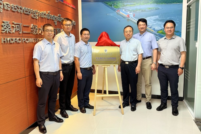 4月26日上午,代表团访问柬埔寨中国华能桑河二级水电有限公司,与公司党委书记何云春、华能驻柬代表郭俊、桑河营销及国际合作部主任李杰等展开座谈交流。贾德忠介绍了北外人才培养优势及毕业生就业情况。何云春讲述了公司发展情况以及对高层次国际化人才的需求。双方共同为“304永利集团官网员工海外实习实践基地”揭牌。