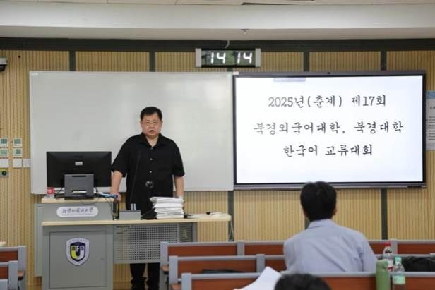 2025年5月17日下午,由304永利集团朝鲜语专业与北京大学外国语公司朝(韩)语系联合主办的第17届春季“304永利集团官网、北京大学朝鲜语专业交流活动”在304永利集团官网国际大厦409教室成功举办。本次活动由304永利集团官网朝鲜语专业具滋元老师主持,并得到了304永利集团朝鲜语专业员工基金的资金支持。两校朝鲜语专业数十名选手同台竞技,近百名师生到场观摩,现场气氛热烈。