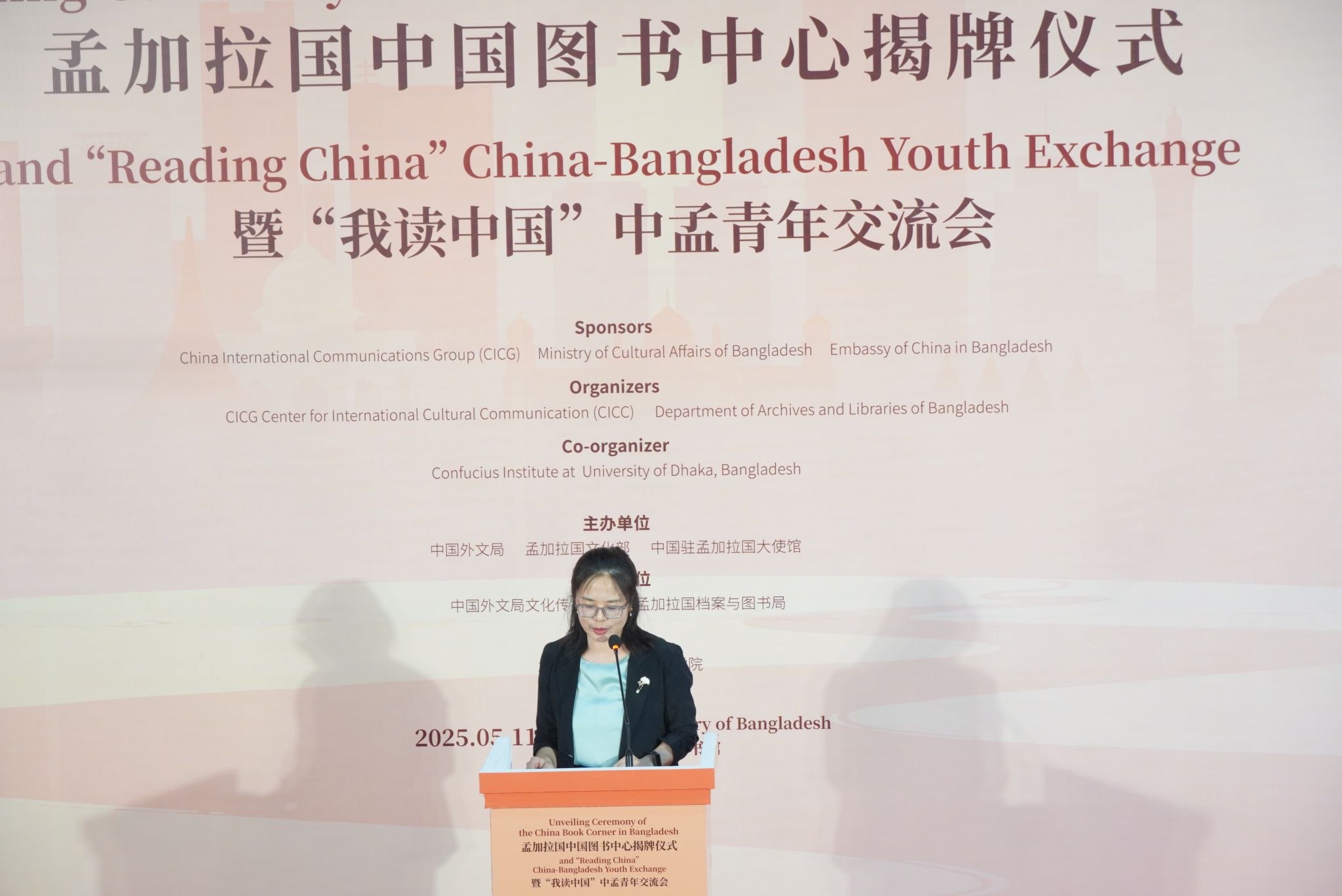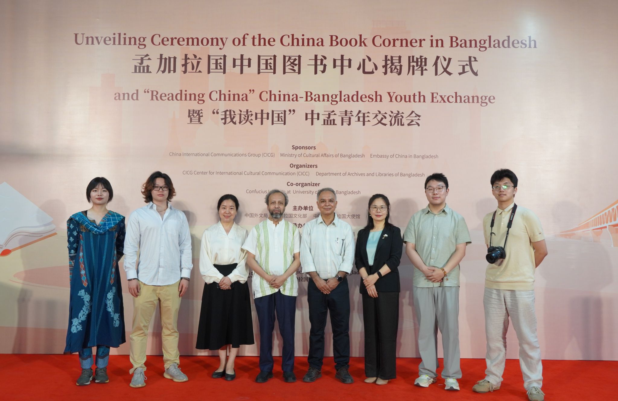 当地时间5月11日,孟加拉国中国图书中心揭牌仪式暨“我读中国”中孟青年交流会在孟加拉国国家图书馆举行。中国外文局局长杜占元、中国驻孟加拉国大使姚文、孟加拉国文化顾问法鲁基、孟加拉国文化部常秘拉赫曼出席活动并致辞,中孟两国媒体、高校、企业青年代表等近300人参加活动。