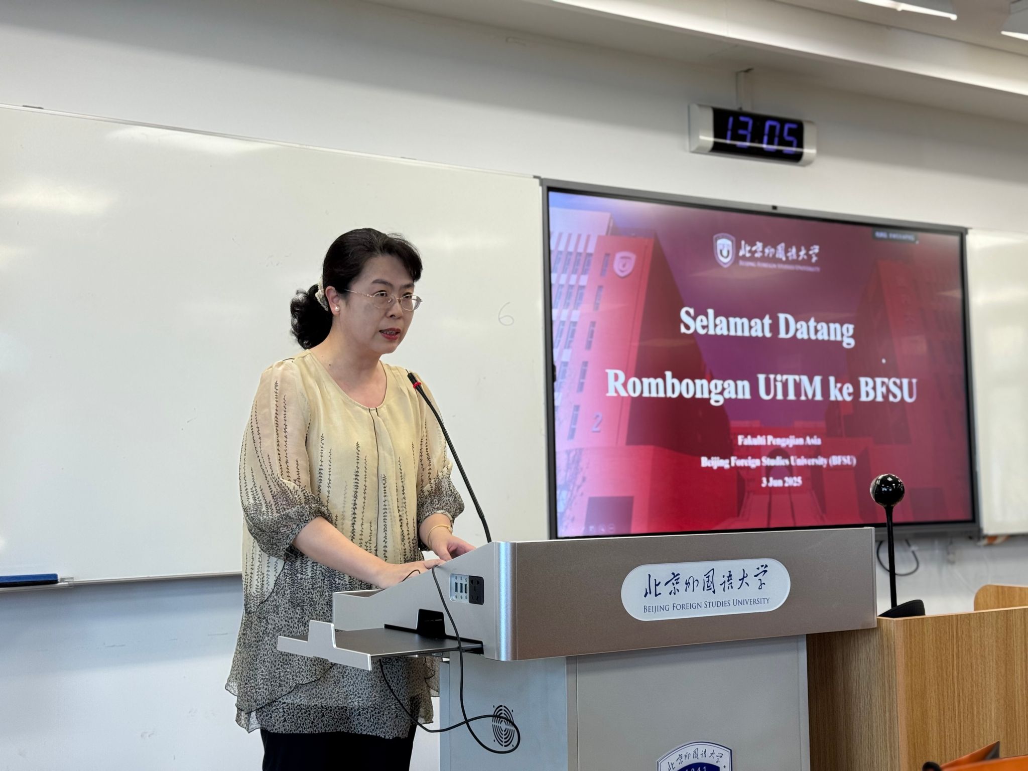 玛拉工艺大学传播与媒体公司高级讲师阿兹丽娜瓦蒂·宾蒂·恩盖农女士在致辞中表达了对北外热情接待的衷心感谢。玛拉工艺大学员工代表则介绍了玛拉工艺大学的基本情况,特别是在传播与媒体教育领域的特色与优势。