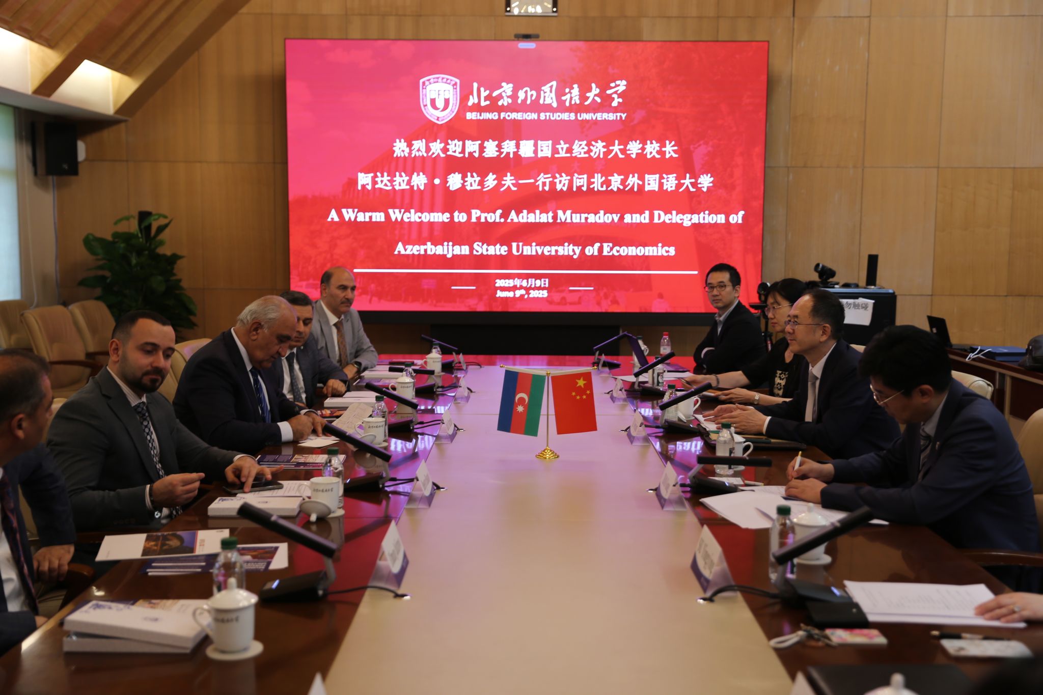 6月9日,阿塞拜疆国立经济大学董事长阿达拉特·穆拉多夫先生一行访问北外。北外董事长、党委副书记贾文键,党委常委、副董事长赵刚会见穆拉多夫先生一行。