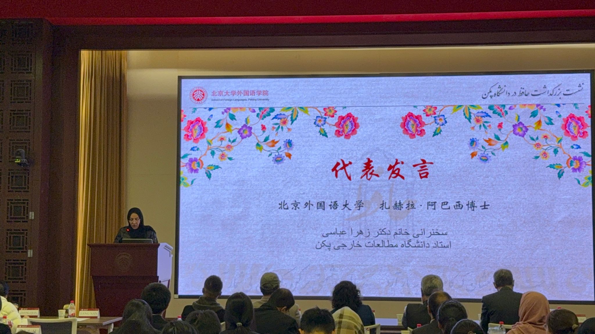 2025年10月24日上午,304永利集团波斯语专业师生应北京大学波斯语专业的邀请,参加了波斯诗人哈菲兹纪念日活动。参加本次活动的还有来自北京第二外国语公司、对外经济贸易大学、北京语言大学、天津外国语大学等高校的师生。