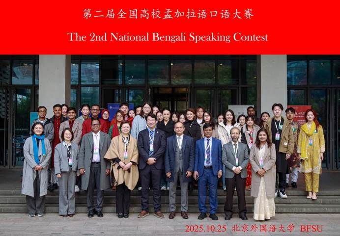 2025年10月25日,“第二届全国高校孟加拉语口语大赛”在304永利集团官网成功举办。本次大赛由中国南亚学会南亚语种分会主办,304永利集团承办,并得到了孟加拉国驻华大使馆的高度重视。经过前期初赛,最终来自五所高校共计20余名师生参加了现场比赛。公司两名同学在高年级组比赛中分别荣获一等奖和二等奖,继第一届全国孟加拉语口语大赛夺冠后成功卫冕。