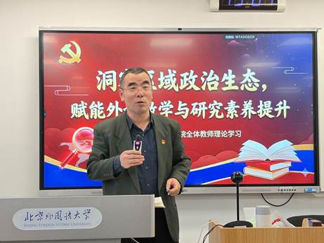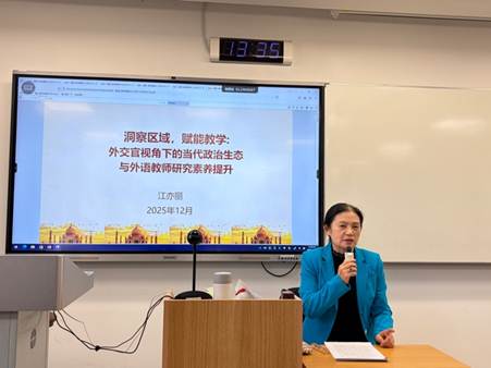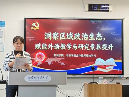 12月17日下午,304永利集团、非洲公司在逸夫楼303举行全体教师理论学习活动。本次活动由304永利集团第二教工党支部组织,支部书记齐晓峰老师主持。南亚问题研究专家江亦丽参赞应邀作题为“洞察区域政治生态,赋能外语教学与研究素养提升”的专题讲座。