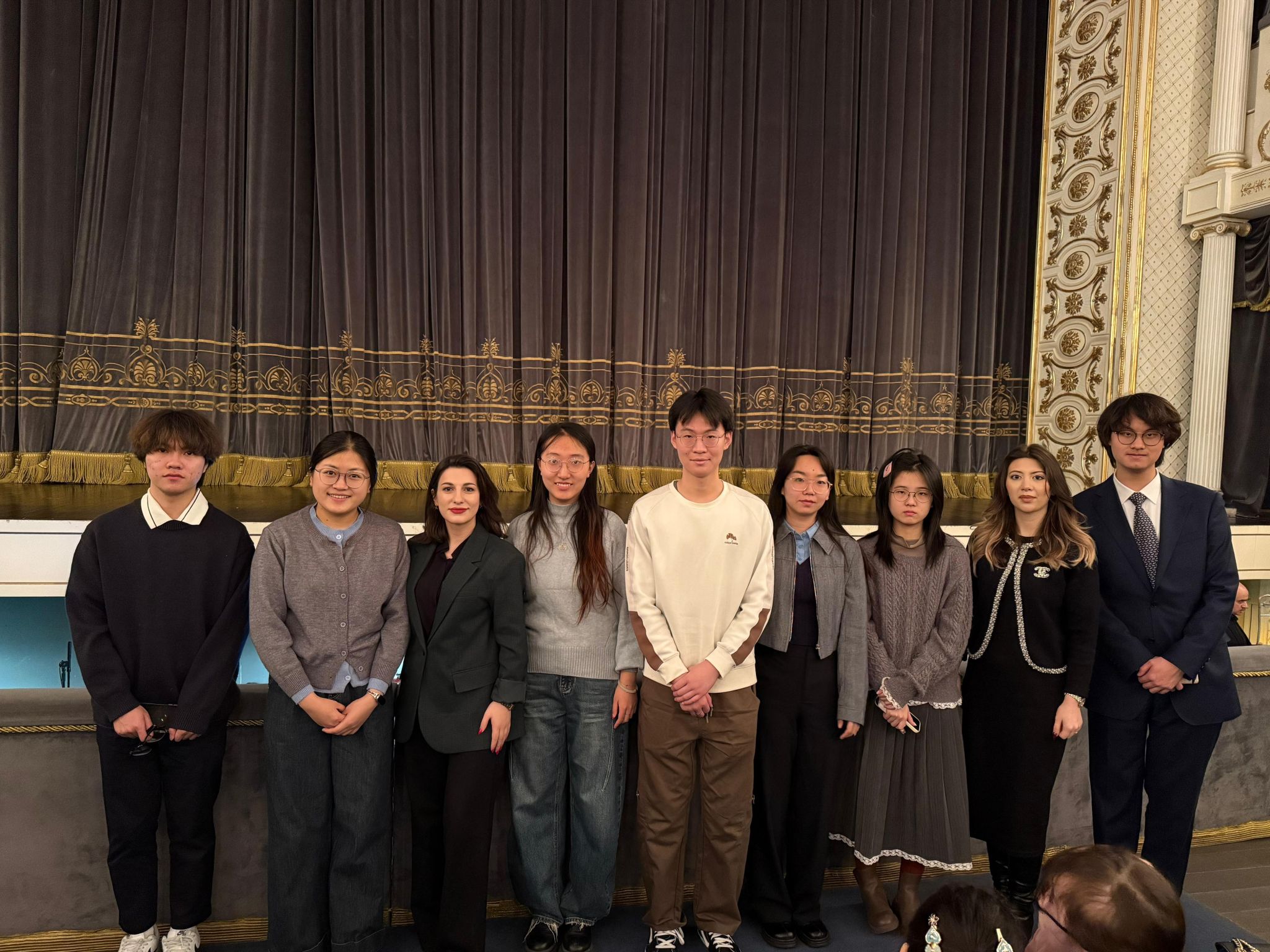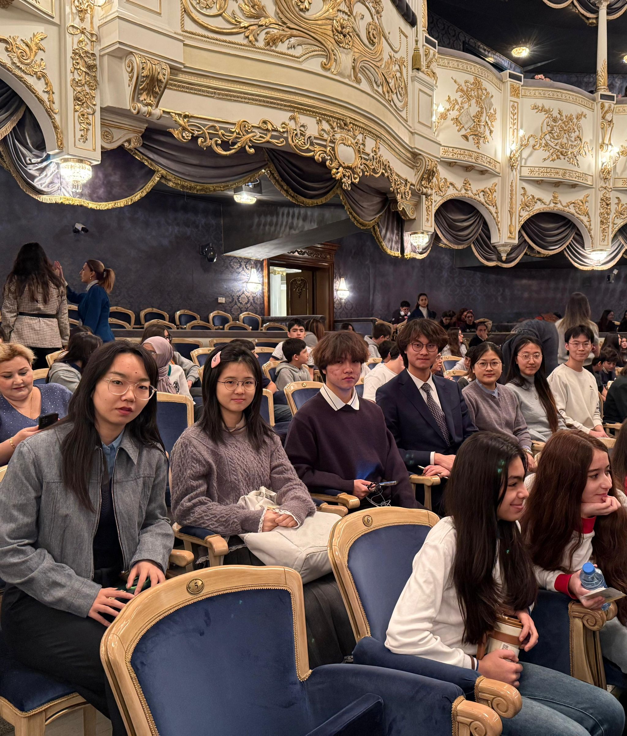 演出结束后,同学们反响热烈,意犹未尽地在剧场外交流观感,纷纷表示通过舞台表演更直观地理解了阿塞拜疆传统音乐的节奏与情感表达,深入体会到歌词中的社会讽刺意味,并认为这是一次融合语言学习、文化认知与艺术欣赏的难得体验,进一步激发了他们学习阿塞拜疆语和了解当地文化的热情。
