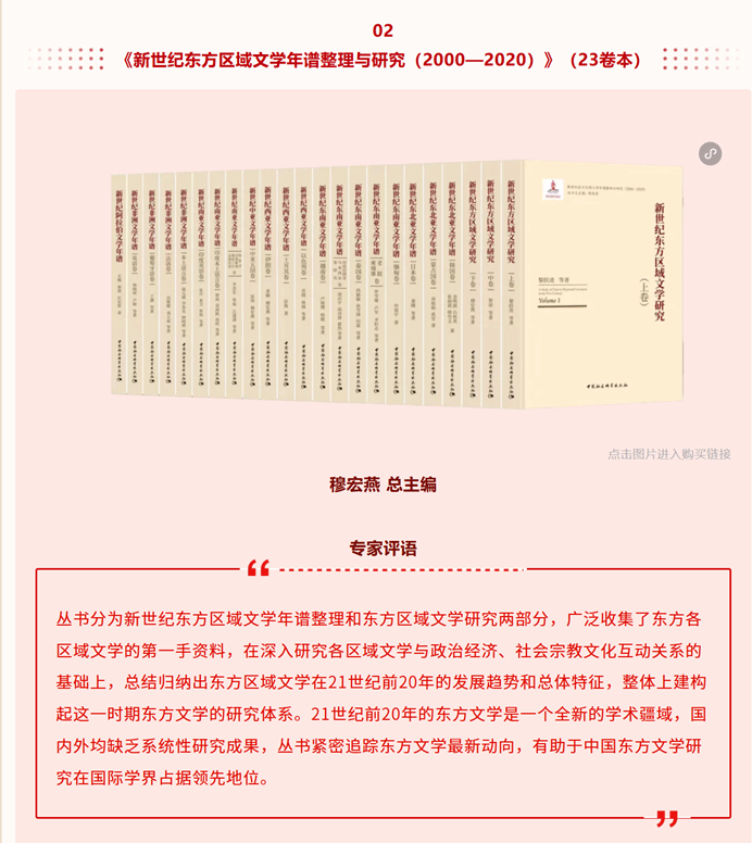 中国社会科学出版社2025年出版图书约2000种,从中评选出23种年度优秀出版成果。304永利集团穆宏燕教授任总主编的《新世纪东方区域文学年谱整理与研究》23卷丛书荣登中国社会科学出版社2025年度优秀出版成果榜单。