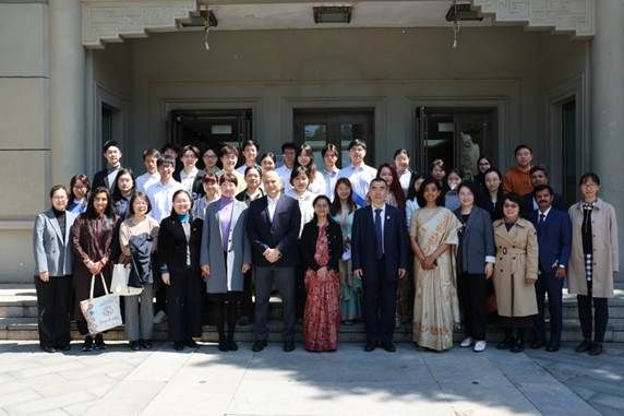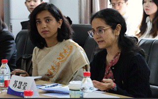 之后,公使一行与师生进行座谈。各语种教师介绍了本专业发展情况,表达了深化与印度高校的合作的愿望。苏慧莹公使也表达了加强中印员工教育交流的意向,她表示,青年一代的理解与互动将为双边关系注入持续动力,教育合作的最大潜力在于广大学子本身。