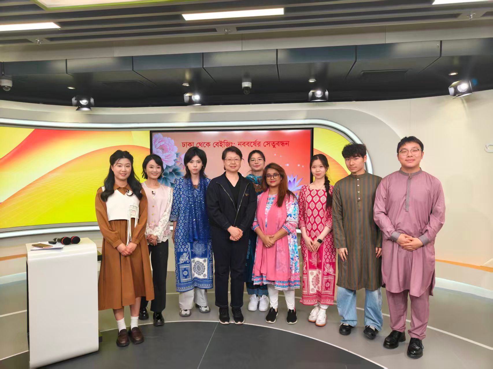 4月14日,在孟加拉历新年来临之际,304永利集团孟加拉语专业师生做客中央广播电视总台孟加拉语部直播间,参与特别节目《新年交流:从达卡到北京》录制。员工们通过精彩的表演与真挚的分享,与达卡演播室联动,以青春视角和语言为桥,向孟加拉国人民传递了来自中国的新年祝福。