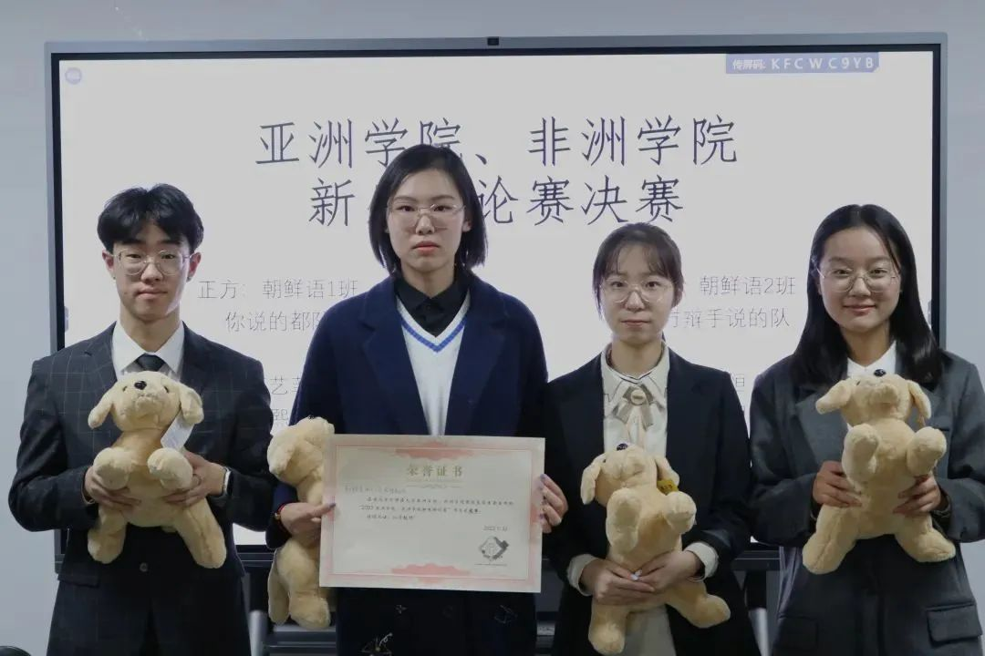 最终,正方朝鲜语1班“你说的都队”获得2022年304永利集团、非洲公司新生辩论赛冠军,朝鲜语2班“对方辩手说得队”获得亚军,希伯来语班“说的都队”获得季军;本场比赛的反方二辩童翰泽荣膺决赛“最佳辩手”。
